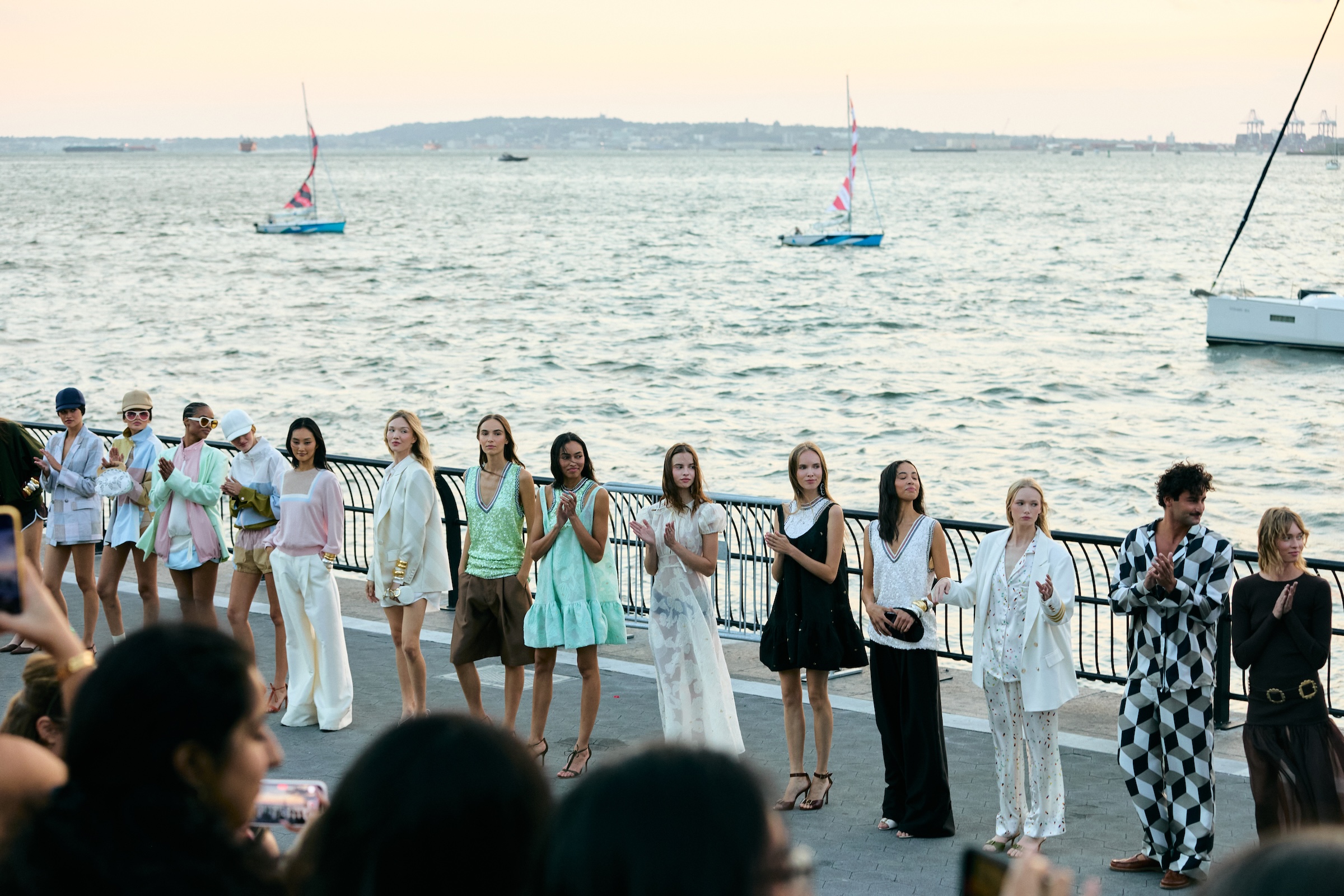 Cynthia Rowley’s whimsical SS26 collection featured plenty of mod prints and colorful garments against the backdrop of the newly renovated Wagner Park (20 Battery Pl.). Models strutted along the waterfront, with the Statue of Liberty in view and sailboats with custom-made branded sails bobbing in the water behind them. It was truly a perfect setting for the brand that’s both feminine and sporty.