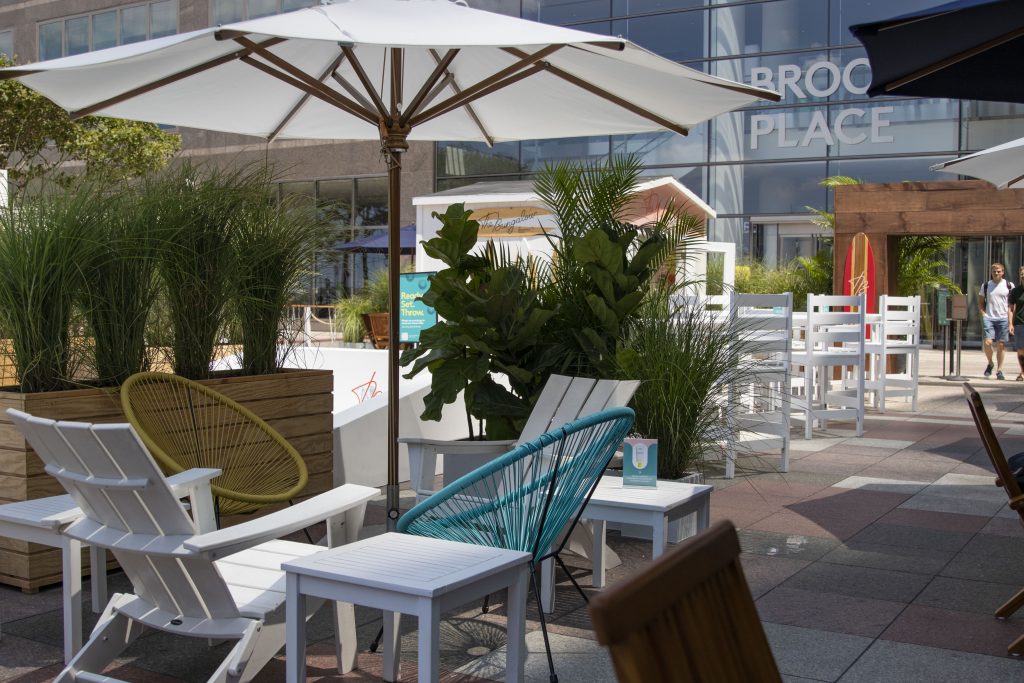 The Bungalow is a new seasonal bar and venue at Brookfield Place serving cocktails, food, games and entertainment among palm trees, inspired by the vacation resorts of Montauk.